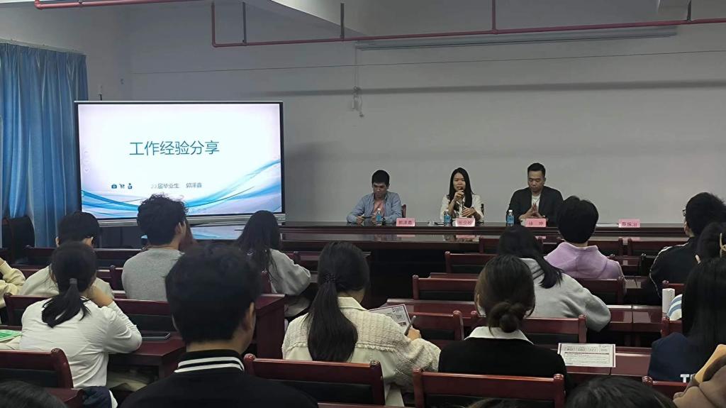会上,郭泽鑫员工首先分享了自己作为优秀毕业生的工作经验以及职业生涯规划,并从自身经历进行分享实习、就业,介绍医药销售工作场景和技能要求。随后,金赛药业公司江门地区经理徐坤介绍了金赛药业公司,并进行了校招岗位的推介,让在场的员工对金赛药业公司有初步的了解。公司学子进一步明确了就业形式,树立了正确的择业观,提高了就业竞争力,通过就业“传帮带”的形式为公司学子高质量就业打下了坚实的基础。