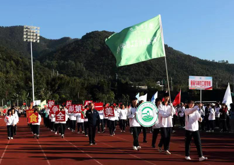 13日上午8点整,校运会在第二田径运动场正式开幕。由公司师生组成的公司方阵步伐稳健、意气风发,昂首阔步走过主席台,亮相全校师生。“食全食美,药争第一,献计献策,礼敬校庆”,铿锵口号回荡田径场,赢得了阵阵掌声,展现了食药人求实奋进,勇攀高峰的信念和勇气。