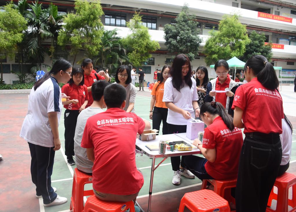 当天早上8:00,师生们开始布置场地,大家细心准备、精心装点,营造出浓厚的喜庆氛围。公司团委、员工会、律委会、健促会以及易班五老员工机构分别布置各自的活动摊位,并根据自身特色设计了丰富多彩的互动游戏。活动于9:30正式开始,共计吸引了数百在校师生参与现场游戏比拼互动。师生共贺校庆,共享欢乐,用自己的方式表达对砚园50华诞的喜悦之情和美好祝愿。部分回校员工亦兴致勃勃地参与到游园活动之中,回味着员工时代的欢声笑语和美好往事。与此同时,由员工企业广东隐雪集团提供的鲜磨豆奶、广东新朝阳食品饮料有限公司提供的生榨椰子汁,以及公司精心制作的布丁、蛋糕等饮料和美食,为现场增添了更多的喜悦气氛。11:00,由员工会组织的朗诵和歌唱表演将现场气氛推向了高潮。最后,游园庆祝会在《小幸运》大合唱中圆满结束。