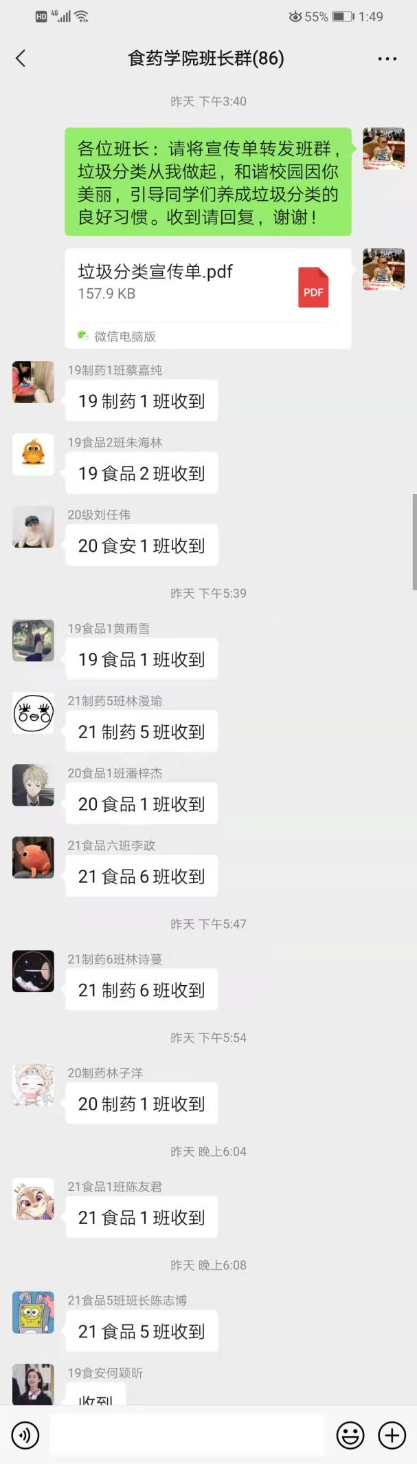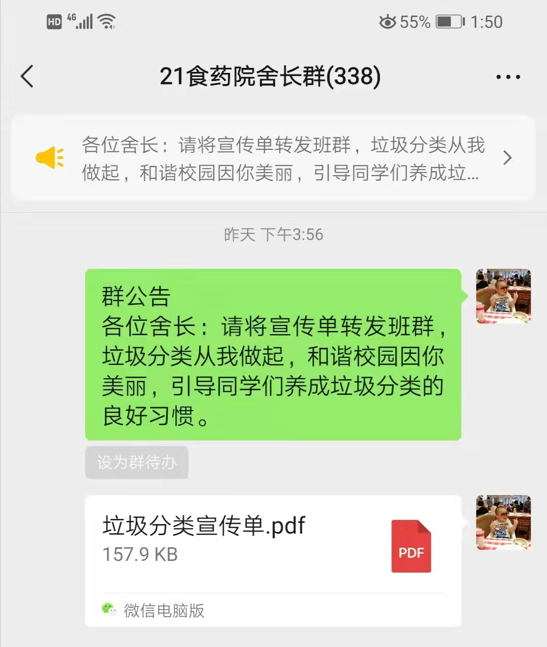 此次活动面向公司全体在校生,活动宣传以线上宣传、入宿宣传和进班宣传相结合的形式开展。首先,利用微信、QQ、易班宣传垃圾分类知识,知晓率达100%。其次,组织员工志愿者进入员工宿舍,通过派发宣传单,耐心为同学们讲解垃圾分类知识,督促同学们在日常生活中养成垃圾分类的良好习惯。再次,组织带班党员利用2021级新生晚修时间召开主题班会宣传垃圾分类相关知识,并随机抽取新生进行垃圾分类答题,加深对垃圾分类知识的理解。