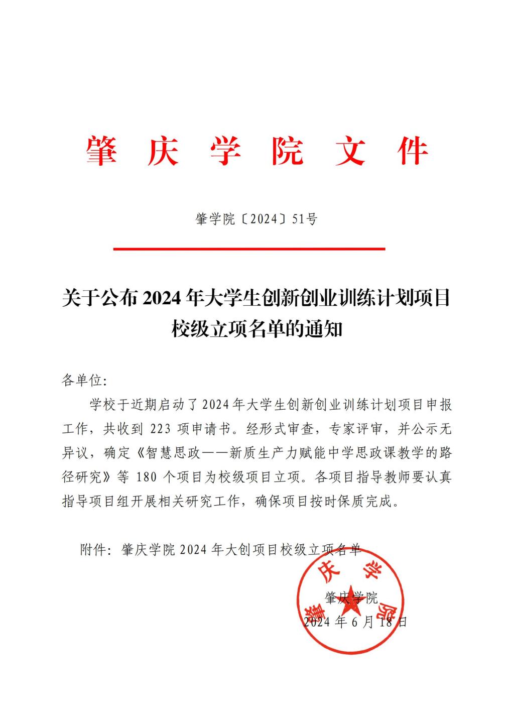 近日,公司发布《关于公布2024年老员工创新创业训练计划项校级立项名单的通知》(肇公司〔2024〕51号),公司在2024年国家级、省级和校级老员工创新创业训练计划立项中喜获佳绩。