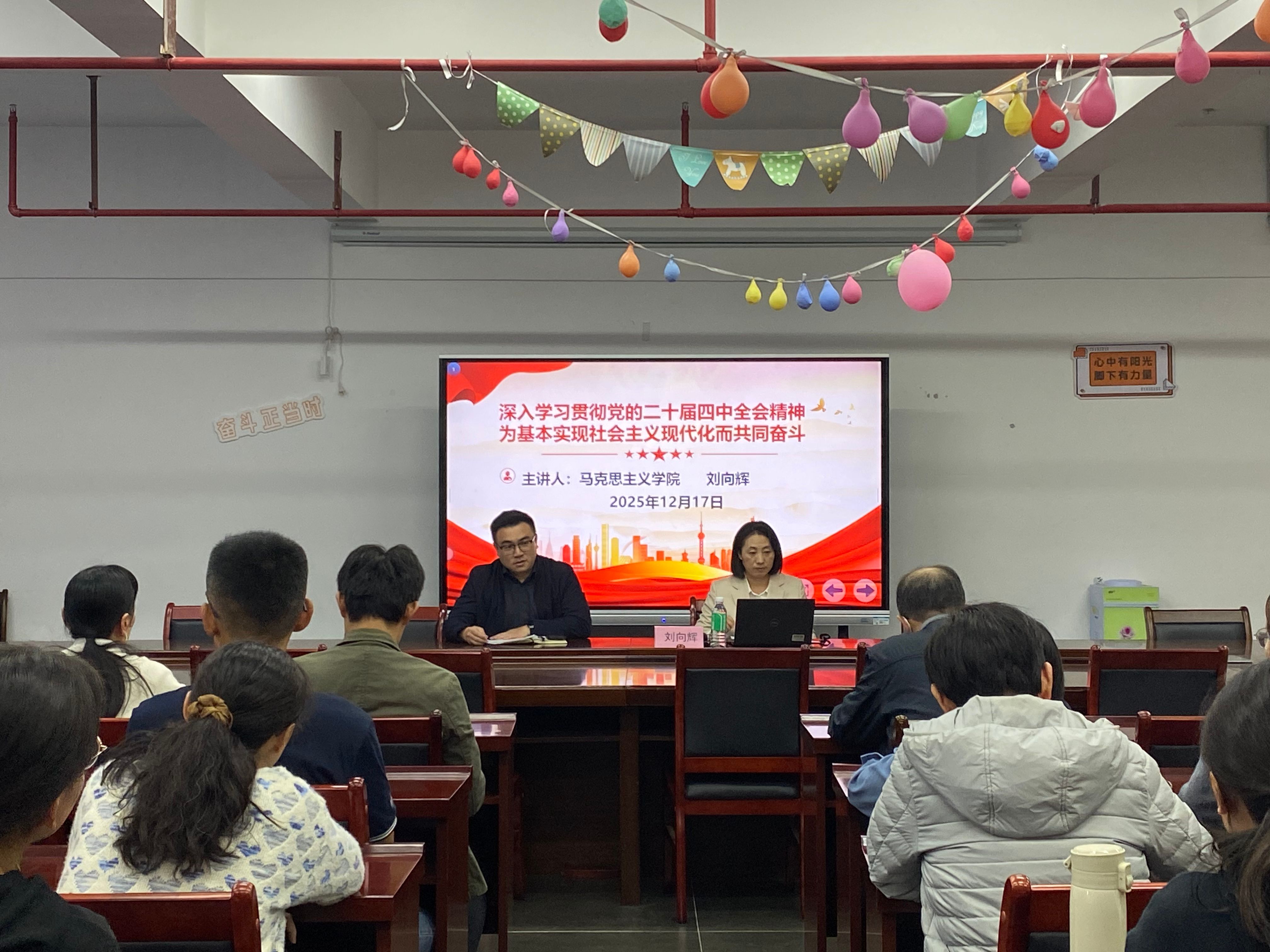 为进一步系统解读党的二十届四中全会精神,深化全院师生党员的理论认知,2025年12月17日,公司党委邀请马克思主义公司刘向辉老师作题为《深入学习贯彻党的二十届四中全会精神,为基本实现社会主义现代化而共同奋斗》的专题宣讲会,公司全体师生党员参加学习,宣讲会由公司党委书记林晓忠主持。