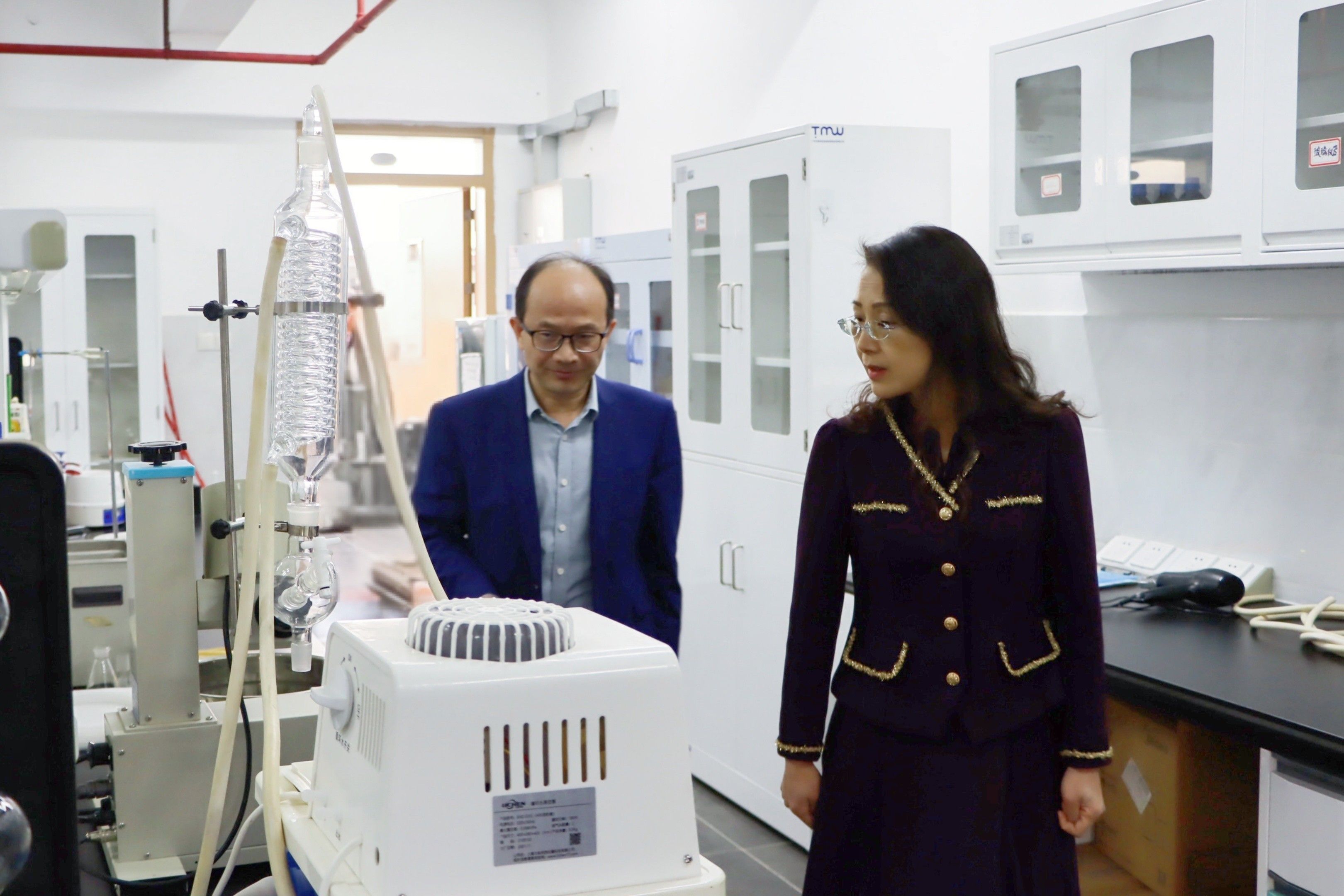 调研期间,李琴董事长先后参观了农业农村部农产品质量安全风险评估实验室(肇庆)、省食品营养与安全重点实验室、市食品营养与健康重点实验室等省市重点科研平台以及公司酿酒工艺实验室等教学实验场地,详细了解各实验室的硬件设施、科研项目进展及成果转化情况。通过参观走访,李琴董事长进一步了解了公司的办学定位、学科布局以及科研与社会服务对接情况。